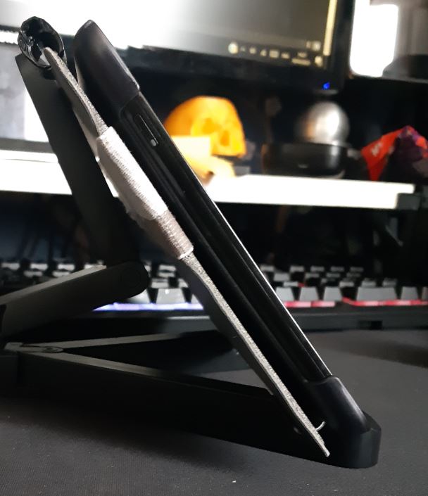 I usually glue a 1/4-20 T-nut to the back of my devices so I can use a little bendy leg. On my Poke3 I have glued it to the book cover. I haven't made my mind up whether I like the cover or not. I usually install a connector on my devices for the console UART. I like to watch it boot (when I'm screwing it up). |
