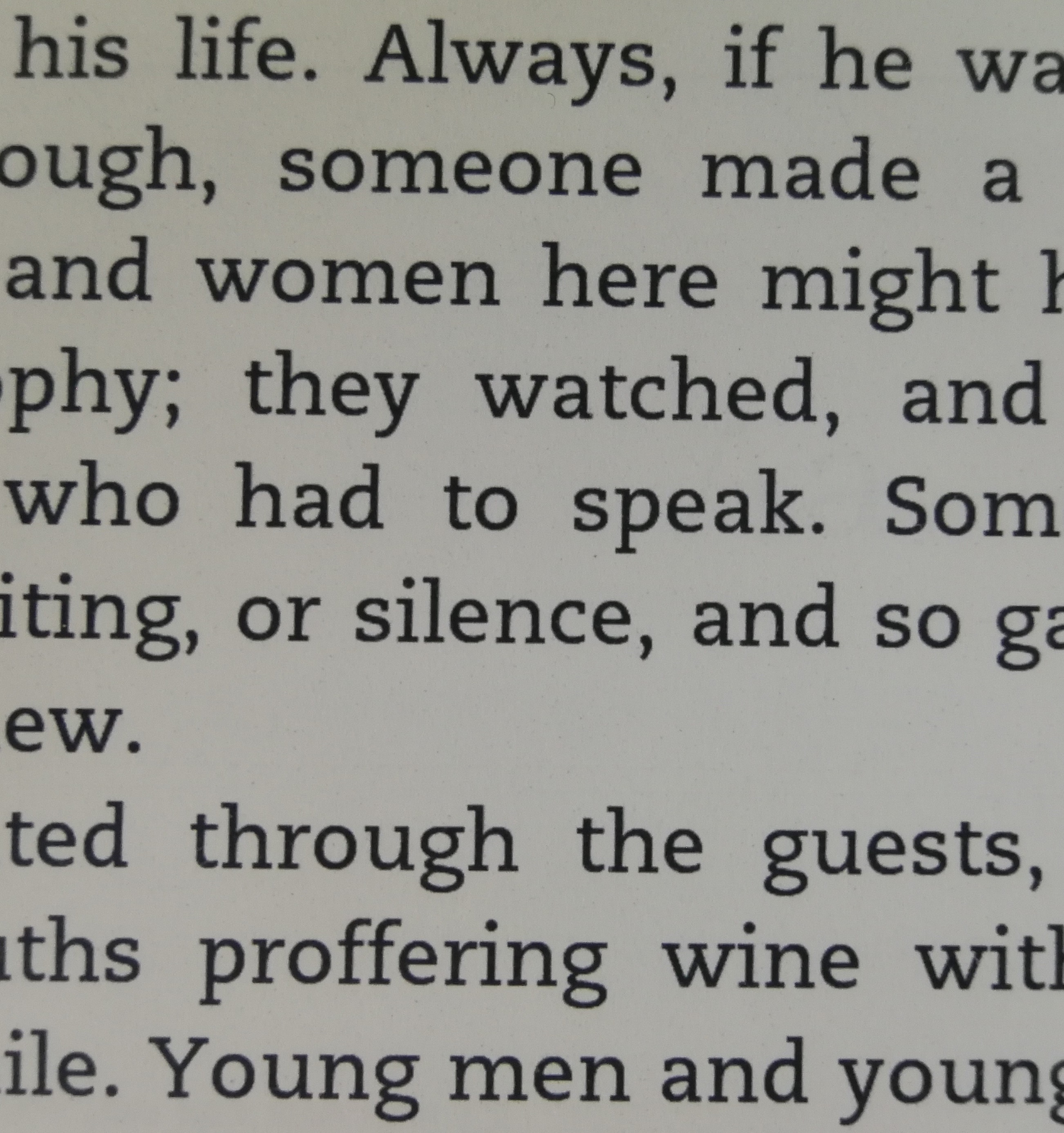 I took some pictures with my phone (I have no dedicated camera). The frontlight is more or less on the same level. No warm light. The font is Caecilia, with no weight added (with other fonts the difference in contrast was even bigger). The books are sideloaded from Calibre in azw3 and epub (The Wheel of Time is kepub). I have not modified the photos in any other way than rotated, straightened and cropped.