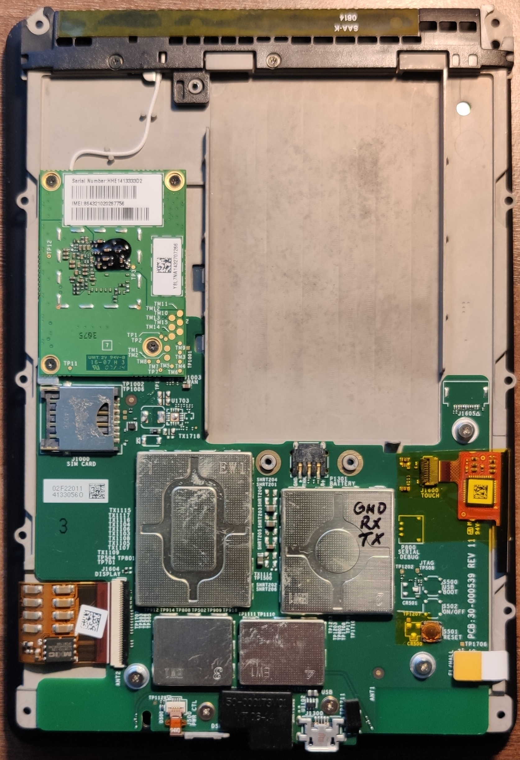 In first place, I want to ask what Kindle model is this ? I did't find DP75SDI in any list. Inside looks like an PW2 but with SIM slot. Problem is ( I think ) with the firmware because when I turn on, the backlight lit and kindle startup page blinks time to time. I try to reset, holding the power button for more than 5 minutes. When I hold the power button for reset the LED blinks orange, 5 times. I left to charge more than 24 hours, and I verify the battery voltage, and is ok. I have usb to serial interface ( TIAO USB ) but I did't find any firmware for this model. Any advice would be helpful. |