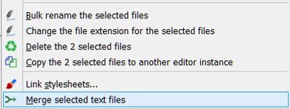 This is different from the way Sigil does it 1) A single file selected Assumes Merge into previous (in list) when you ctrl-M. 20 If multiple selected, then it want a confirm (still first) viva the difference. I use both, because of DIFFERENT ways of doing things (and I don't want either to conform to the other) |