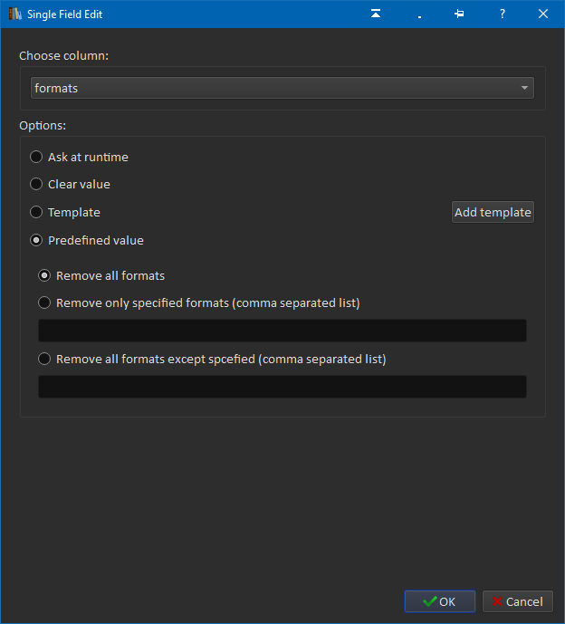 Also, silly question: Where exactly in single-field edit is the "add format from predefined path"? I only see the option to remove formats.