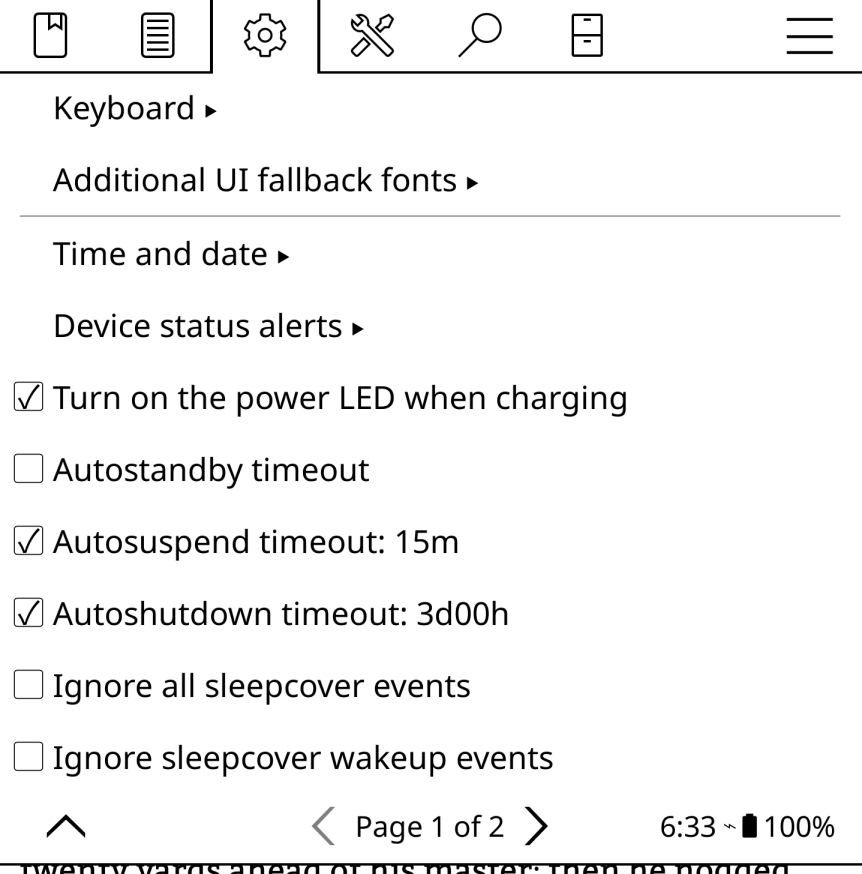 Here's the settings.reader.lua , extension changed to txt to allow it to be attached here. This is from prior to enabling the standby and verbose logging. I have enabled the logging am now going to set the 5 second standby as suggested and extract the pr8962 as suggested. Morituri te salutant!