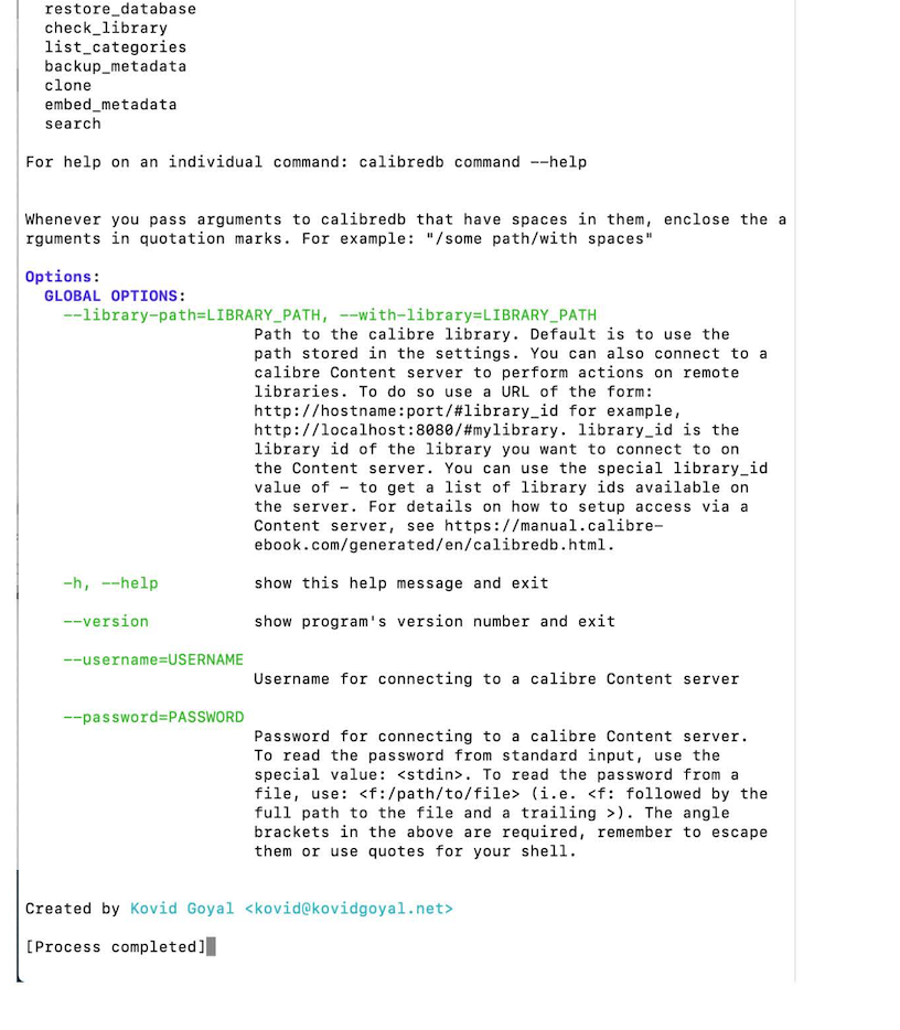 | calibredb, catalina, cli, command line, mac |