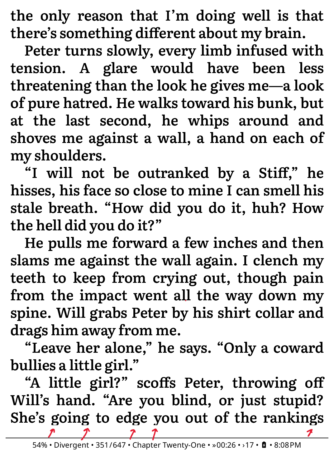 I've got a problem with the last line on a page which appears to be slightly cut off as can be seen in the attachment. It's usually subtle but depending on the font, its size and line spacing can grow up to even half a line (which unfortunately I wasn't able to reproduce here). Since I like to play with my settings a lot as I read, it can get quite annoying. There are settings which cause it not to occur (as can be seen in the second attachment) but it's rather rare. I was wondering if there's any setting or something I'm unaware of that could fix it. Note: I've tried 2 different epub files and 2 different koreader versions to no avail. I'm using jailbroken PW4. Any help would be appreciated. |