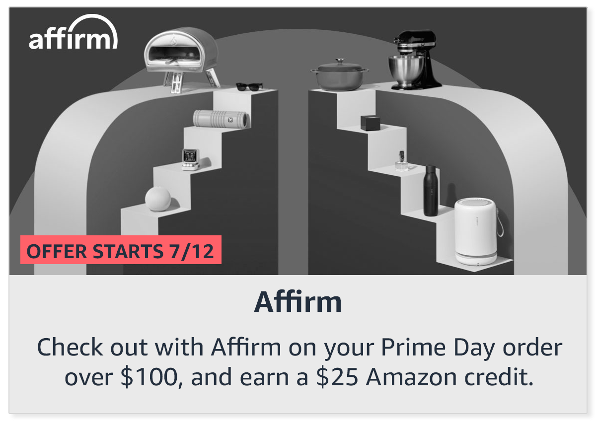 Check out with Affirm on your Prime Day order over $100, and earn a $25 Amazon credit.