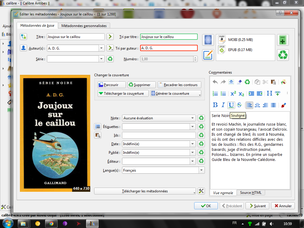 But does it essentially do the same thing as when using "change metadata", which I thoroughly do for all my ebooks before converting them to Mobi (basically retaining correct author's name in correct order, correct title correctly capitalized, and language, and nothing else - see enclosed pic -), or does it go "deeper" and change things "more thoroughly" ? I ask because I noticed that when I send the EPub file to someone by mail after changing its metadata, its original name remains unchanged. |