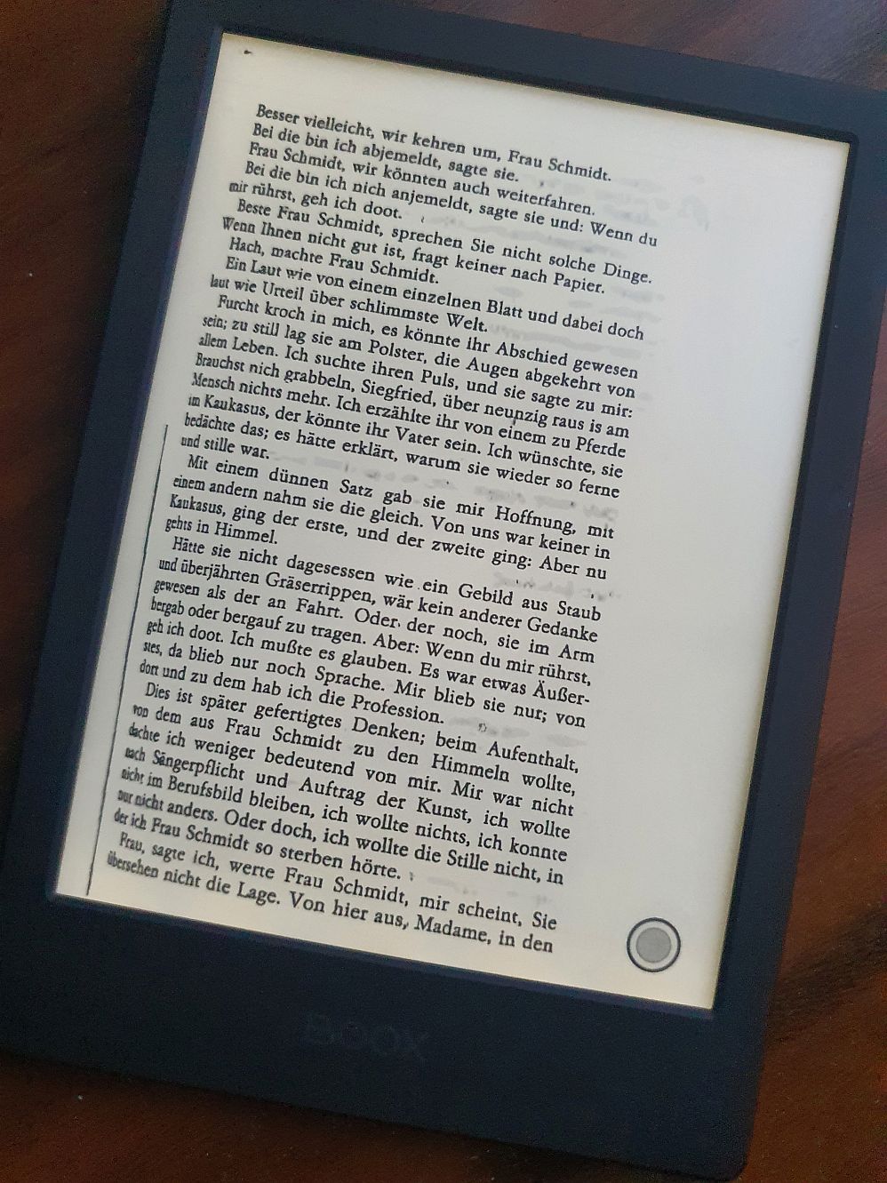 Here is BookFusion's home view on the e-ink screen: When you make a screenshot of it directly on the device, it looks like this when transferred to a color screen: That looks a lot worse than the black-and-white version in reality. (This cheap Onyx e-reader only has a screen resolution of 758 × 1024 pixels, which, on a color 6-inch screen, isn't enough for quality color display, but for a black-and-white e-ink reader, it's perfectly adequate.) Here is a scanned PDF book (images only) when viewed in BookFusion on this e-ink device: It's perfectly sharp, and a joy to read – even on such a small 6-inch screen. In fact, I have discovered that BookFusion's display of PDF files is superior compared to Adobe Acrobat's display of the same PDF files! As to EPUBs, here is one in BookFusion on this e-ink device: Once again, perfectly sharp picture and a joy to read. However, here we already begin seeing some of the current deficiencies of BookFusion on Android when compared to BookFusion on iOS. (I know it's only temporary.) For now, BookFusion on Android doesn't support paragraph alignment (no "justify paragraphs" is possible). Of course, that's elementary functionality. It was only added to BookFusion for iOS a few weeks ago, so I'm sure it will be added on Android as well. Another deficiency is the inability to load custom fonts in BookFusion. I really like only two fonts currently offered by BookFusion: Bookerly and Volkhov. Yeah, all the other BookFusion fonts are usable as well, but I just don't find them all that attractive. This is and always will be entirely subjective. App developers can never oblige everyone's tastes in terms of fonts, so really the only proper way to deal with this is to enable custom fonts. Compare the above screenshot with the following beauty – that's Moon+ Reader in e-ink, and books look just as stunning there as they do on a phone or traditional tablet. Why am I not surprised? You can see the nicely justified paragraphs there, and a font that in my estimation is even nicer than Bookerly – Libre Baskerville, which I set up as my default Day Theme in Moon+ Reader. (That's very different from the ordinary Baskerville font offered by BookFusion, which I find too indistinct.) You can also see the very nice footer offered by Moon+ Reader, whereas in BookFusion, there is no footer and header at all, as you read your book. In BookFusion, you need to tap the center of the screen, and only then, headers and footers appear. But unlike in Marvin, they are not customizable in any way. So, when it comes to headers and footers, there is huge space for improvement for BookFusion. By the way, that small circle in the bottom right corner of the screen isn't Moon+ Reader or BookFusion, but Onyx Boox's "navigation ball". It can be completely disabled, but I find it useful (its menu options can be customized to your liking), so I keep it visible at all times. (The ball can be dragged to any area of the screen you prefer.) Just to showcase Moon+ Reader's abilities in terms of custom fonts and themes, here are the 24 themes/custom fonts I set up in Moon+ Reader Pro on my new e-ink device (I later added Bookerly as theme/custom font no. 25): I use dozens of dark themes, with custom background textures, on my iPads and Android tablets and on my phone, but here on the black-and-white e-ink screen, a dark theme really does not make sense. It just doesn't look good. I left one dark theme in Moon, just for the sake of formality (employing the only non-serif font I use: Futura), but I don't think I'll actually be using it to read anything on this e-ink device. Same goes for custom background textures. They just make zero sense on an e-ink device, because they resemble ghosting that is such a negative feature of e-ink screens. So, now I understand you guys who were sneering at my suggestion that no custom background textures were BookFusion's current weakness no. 1. I guess all of you are e-ink fans! I still claim that custom background textures are the no. 1 priority (at least for my needs), but that certainly doesn't apply to black-and-white e-ink devices. (And probably not to color e-ink devices, either.)Now that we've mentioned color e-ink devices: I have researched this some more, and I learned that when displaying any colored content, a color e-ink device switches to one third of the nominal resolution of its screen! That's completely ridiculous. No wonder folks are complaining about colored e-ink devices – both Onyx Boox Nova Air Color and PocketBook 741 InkPad Color. The colors are too washed out, they say, and black-and-white text too dark. No wonder, because what happens is that these color e-ink devices' screen resolution only gets used when viewing black-and-white content. When displaying colored content, their screen resolution gets instantly reduced by 66%.For example, the PocketBook741 InkPad Color's screen resolution is 1404 x 1872 pixels (that's luxury on an 8-inch screen), but as soon as something colored needs to be displayed, the resolution drops to embarrassing 468 x 624 pixels! Yep, colors must look bad then. It's like going back to the 1990s, to all those fat VGA monitors with a resolution of 640 x 480 pixels. ![]() I guess colored e-ink isn't ready for play yet, and we need to wait another 3 or 5 years for the technology to develop. To sum it up, @skillachie, I don't think any major fixes need to be performed for BookFusion in order for it to be usable on a black-and-white e-ink device. I believe BookFusion on e-ink is just fine as it is now. Any issues I have observed are issues with the Android app, and have nothing to do with the black-and-white e-ink screen. Maybe, if you could create an exclusive "Snow White" theme for BookFusion, that would probably be appreciated by e-ink users. Because any dark interface element tends to look awful on an e-ink screen. But even without such a "Snow White" theme, BookFusion is perfectly usable on e-ink as it is now. Here, t