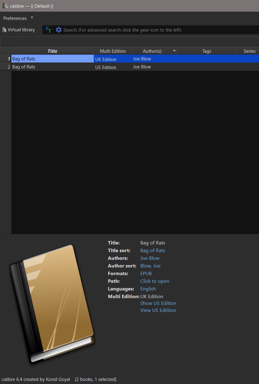 But when Kovid introduced The calibre:// URL scheme, I added a long text column and linked different editions via calibre://show-book and calibre://view-book links, viz: BR |
