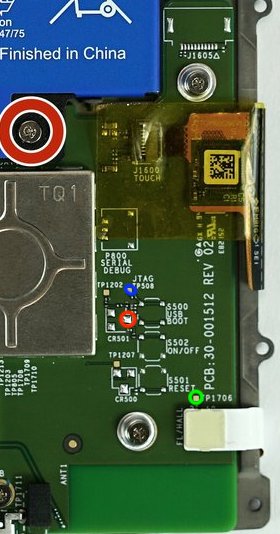 If you have trouble shorting CR501 (shown in red) and TP1706 (shown in green) like I did, try CR501 (shown in red) and TP508 (shown in blue). That's what worked for me.