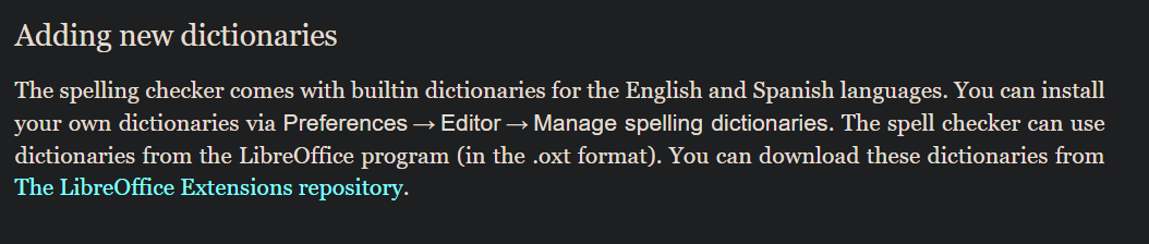 I'm trying to attach an updated dictionary for English on windows 11 and from what the manual says and what I see in preferences is different. I've checked all the options in preferences and I was unable to find an editor option. I've also checked in the book editor and was unable to find an option to add the dictionary