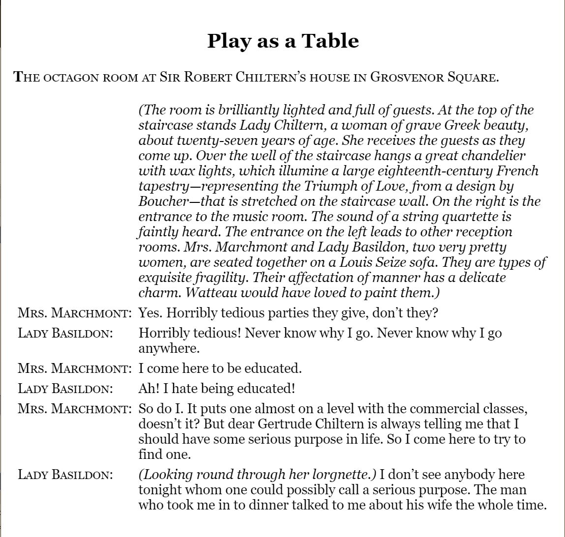 https://standardebooks.org/ebooks/os...-ideal-husband Upon editing it, I found it was formatted as a table. I can see the draw of that, but I'd think that a Description List (<dl>) would be a better solution: https://www.w3schools.com/tags/tag_dl.asp Code: