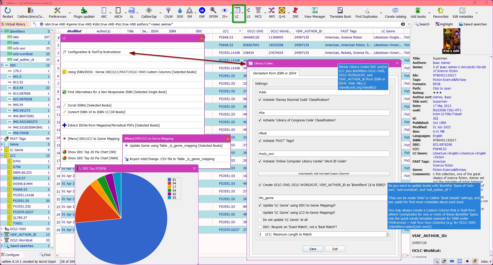 Remember to click the LC icon's down-arrow in the Calibre ToolBar in order to see all of the options of LC. Just clicking the LC icon to get the "default" is great if ISBN works; otherwise, you have to get the OCLC-WI via Author/Title.