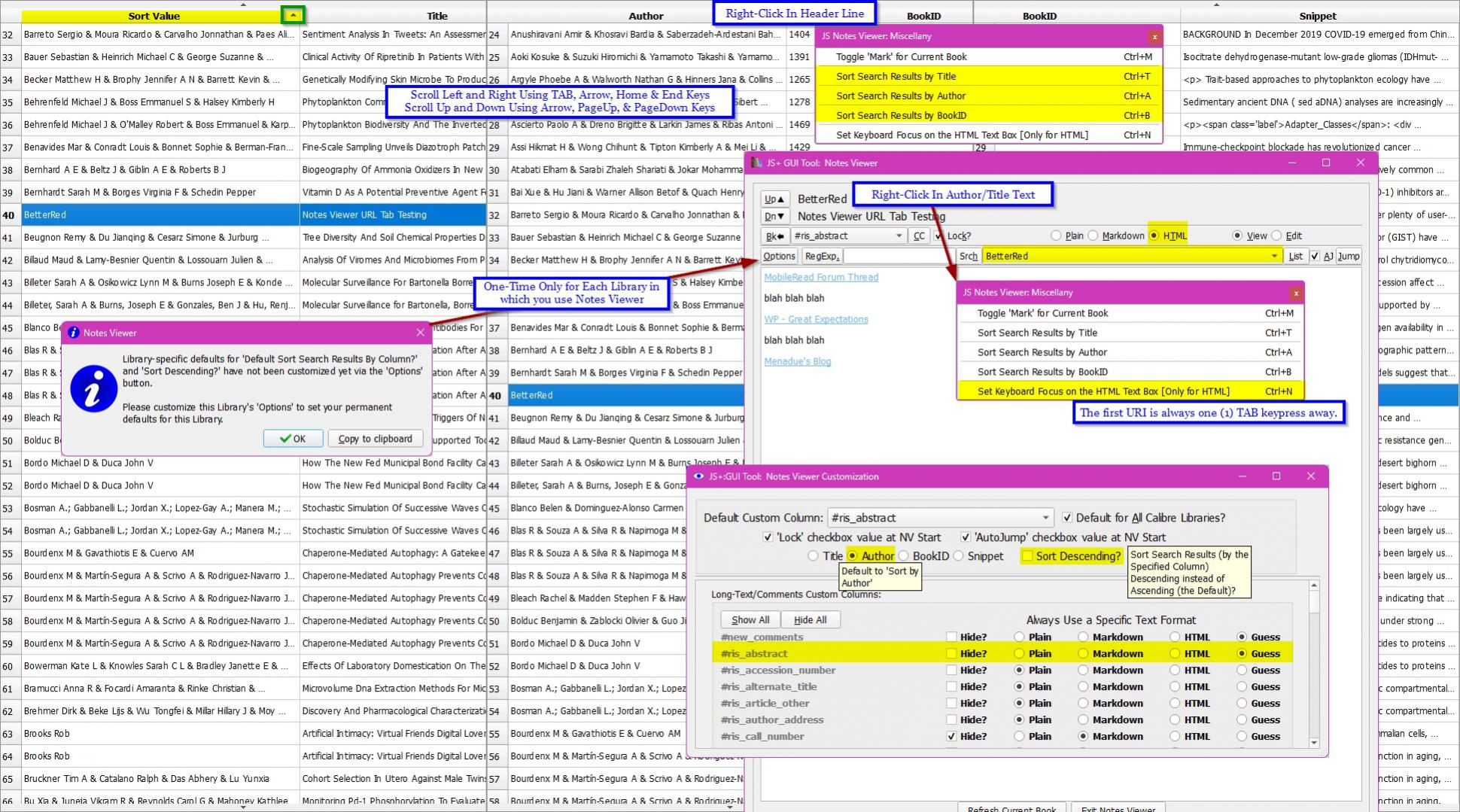 Version 1.0.231 -2023-04-10 New "Freeze" Notes Viewer checkbox so that anything you might do outside of NV has no impact, and some things within NV are disabled until NV is "unfrozen". Padding with zeroes of BookID used in Sorting Search Results numerically fixed. Context Menu enhancements. Search Results List column widths optimized (see the attached image).
