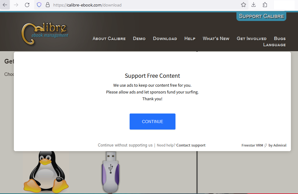 The Calibre website wants me to turn off trackers so that it can be ad supported. I don’t do that because I don’t want trackers on. I would however be happy to click through several ads (even answer a question to prove I looked at them) for a site I want to support. At a couple unremembered sites this was done. I could go through more ads to provide more support (and was happy to do that at those sites to provide support). I would do this at Calibre to help support them, although I primarily use my iPhone and Calibre isn’t available for it. This is just a thought about an alternate way to get support from those who do not want to turn on trackers.