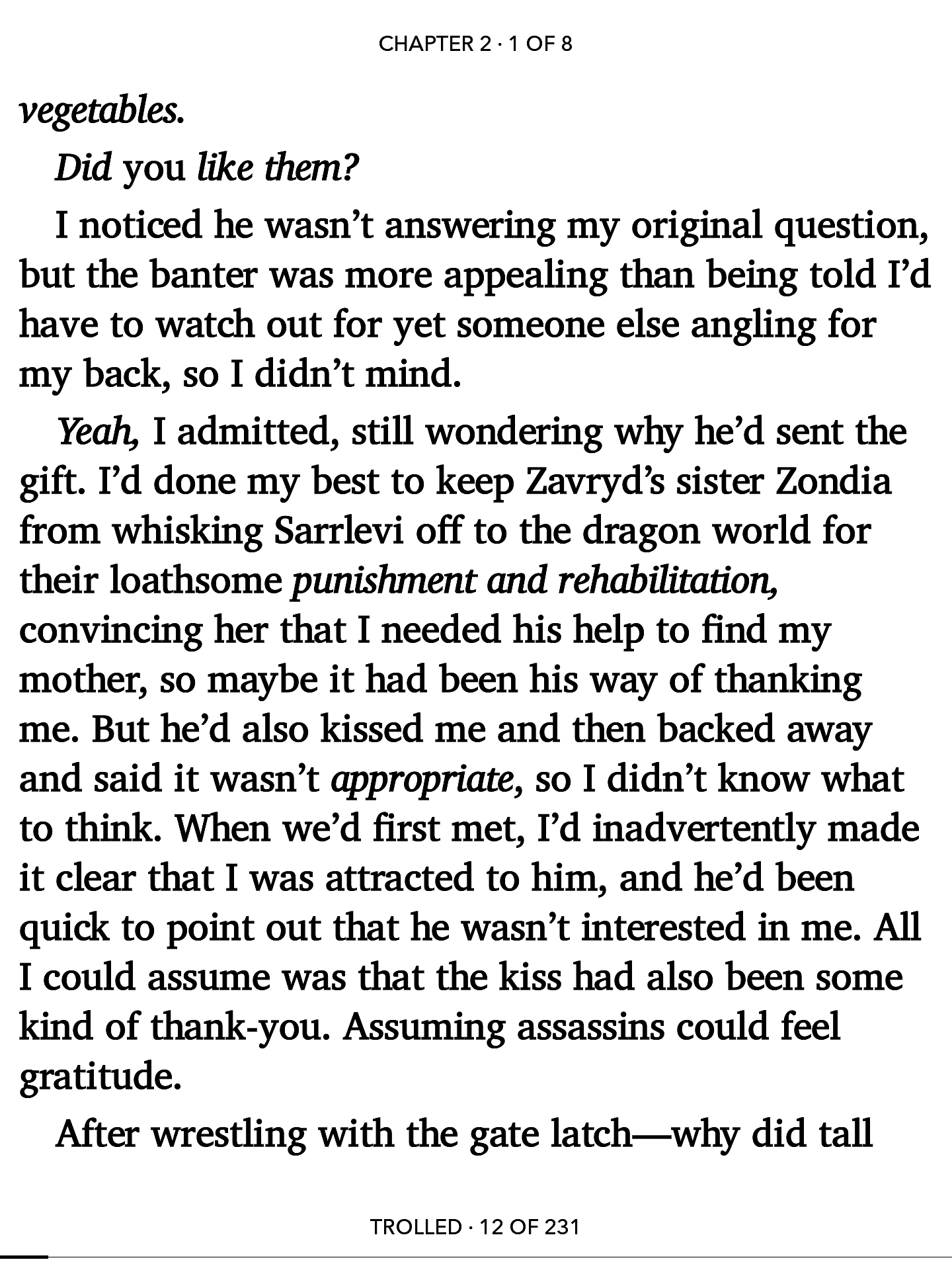 Here's my setup on my Kobo. I'm in the stupid office, so overhead fluorescents are making bright spots on the screen