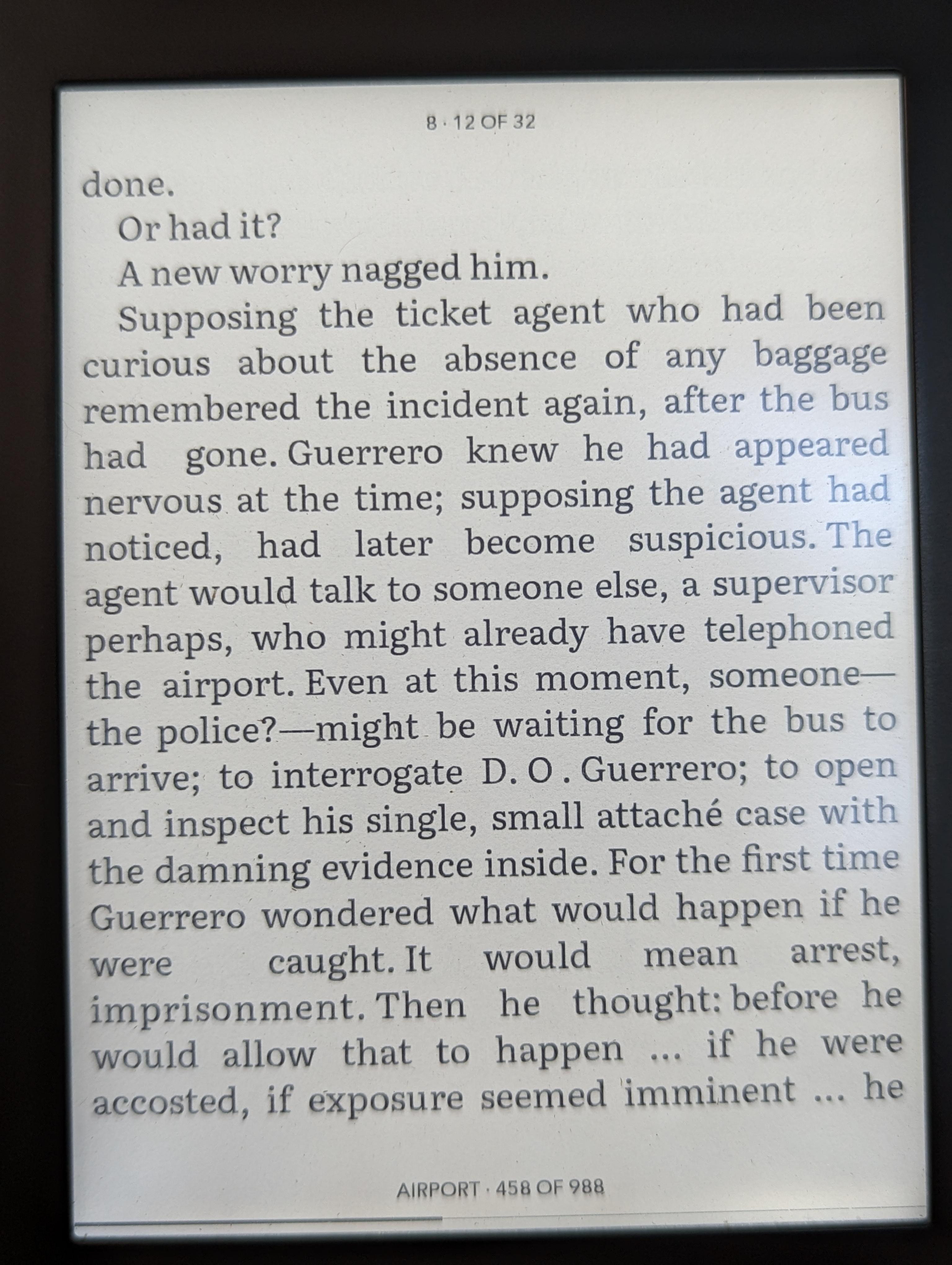 And for people reading badly-formatted books (i.e., ones which use relative font size units on p elements as well as body/html), the custom font sizes patch is kind of critical to be able to set font sizes to what you want. The 24 line spacing values patch is also useful when you want more choices for the smaller values. And, there's also inconsistency between the same font size between identical EPUBs and KEPUBs, which there's a patch to fix. Note related to display directly, but another patch I consider essential is the one I created to increase navigation history on the scrubber, which I find especially useful with non-fiction. For usability, I also like the nickelmenu rotation stuff, since in some positions, it's easier to hold the Clara/etc with the thick part at the top. |