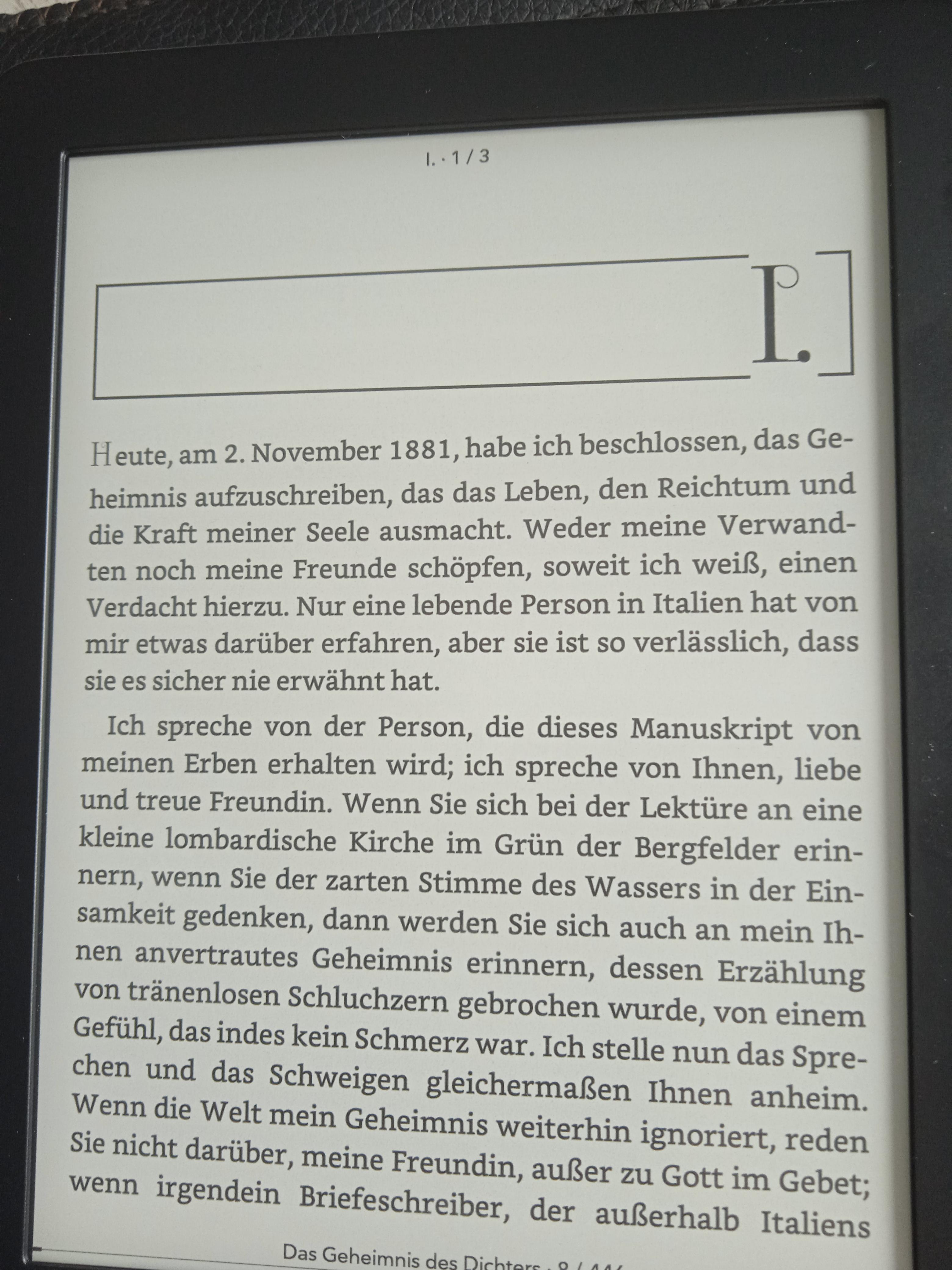 There are still other oddities: If you compare the chapter headings in the images of #1, you'll see that the chapter number in Calibre_View exceeds the frame, whereas in Clara_View it fits exactly into the frame. Originally, it has been just the other way round: fitting in Calibre's Viewer etc., the chapter number fell out of the frame downwards in the Clara. I reduced the font size and got the result as shown. What do we learn? Keep any decorative elements in epubs to a minimum, otherwise there will always be users that can not be satisfied. |