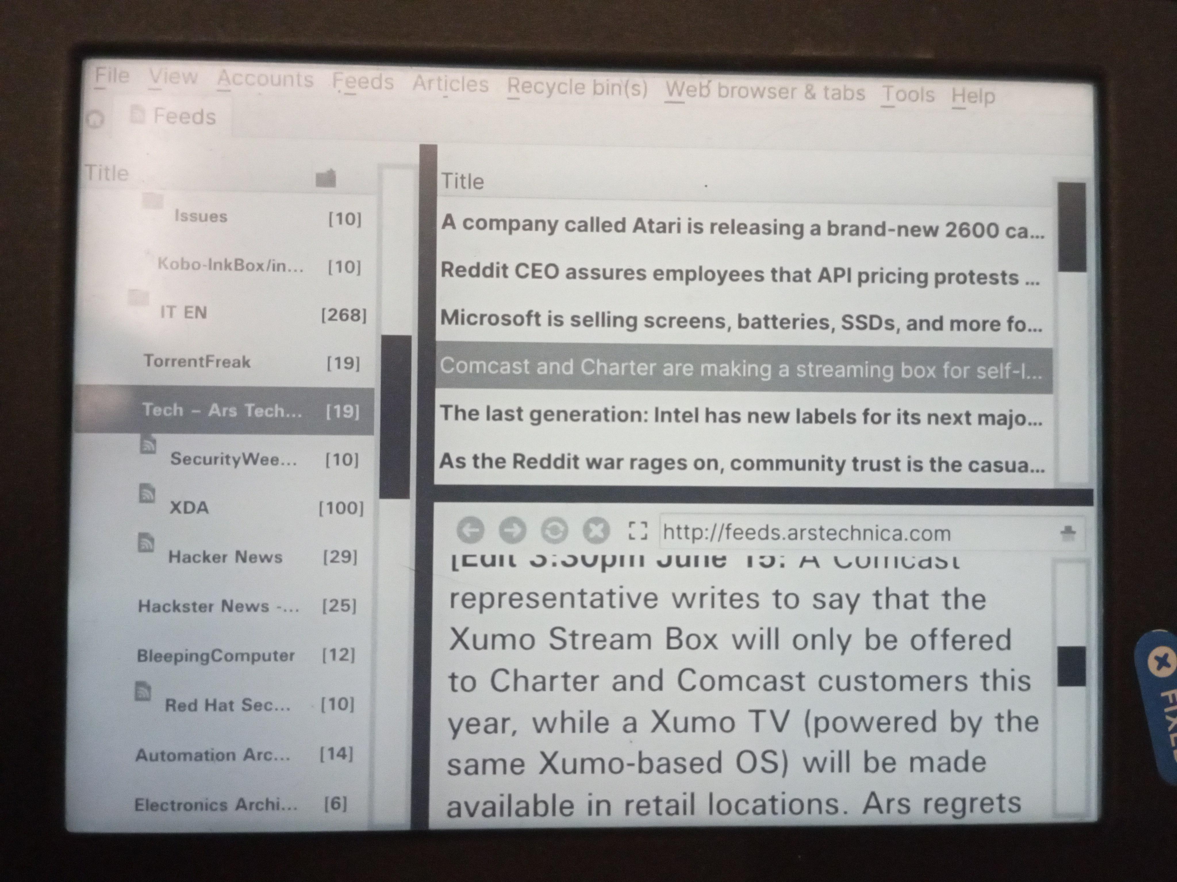 Wow, nice. I am RSS Guard author. Please, create bug ticket on rssguard's github, I can tweak rssguard to look better on e-ink of you need.
