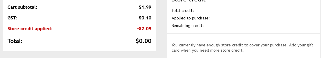 As far as I have noticed, if you have sufficient store credit to cover your purchase, Kobo will not try to use other payment methods. As for adding a gift card, that option only exists when you are checking out and only if your current store credit does not cover the cost of your purchase. Last edited by DNSB; 07-17-2023 at 01:11 PM. |
