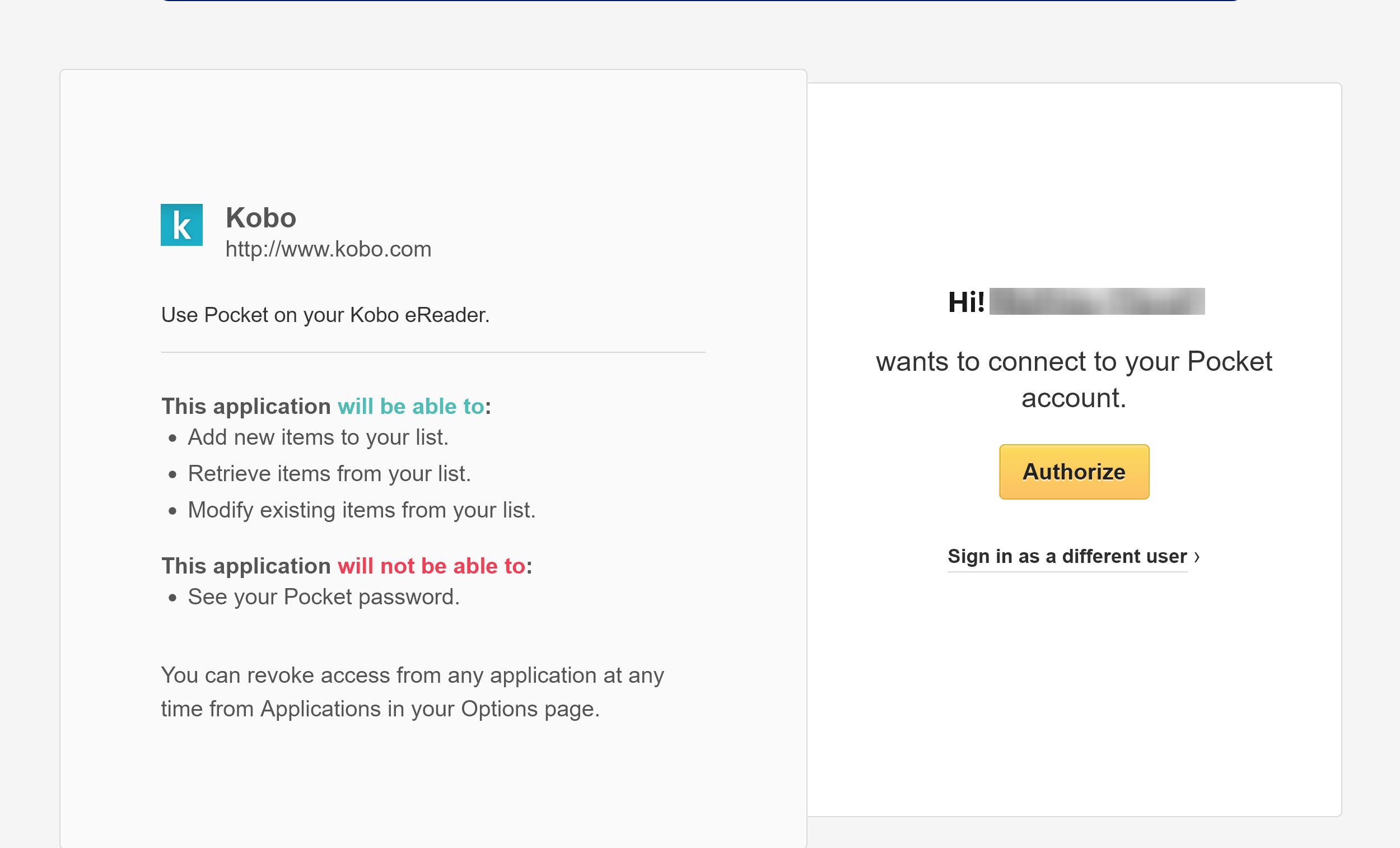 I had a pocket account on an old e-mail and a firefox account on another e-mail. I had not yet migrate my pocket account to firefox auth. I did it first, without problem. The QR code just open the URL: " https://kobo.com/pocket?code= " with the displayed code after the =. When I open that URL, my browser is redirected to my pocket account for authorization: Authorizing redirect to the kobo website with an error: I tried using firefox and chrome with the same error. As I’m using adblocker and other privacy add-ons, I thought maybe something was intercepted in the process. I’m not really needing pocket on my kobo, so I will see later if it’s fixed. |