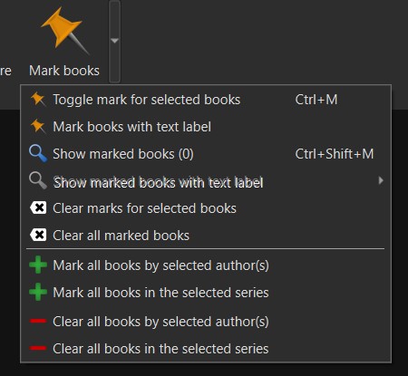 Some of those reasons 'show only marked books' (in search bar) include a reason. Right click in a column adjacent: Mark books: Give a menu of how you can work with marked books |