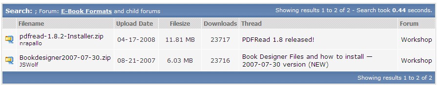 I just noticed that my pdfread-1.8.2-Installer.zip has now virtually tied JSWolf's BookDesigner40.zip in MB's downloaded per day i.e. 175.66 MB vs 175.69 MB respectively! See below attachment for exact details...