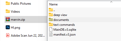 Just find your backup file - in this case it is a Marvin 3 backup - and copy it to your desktop: Change the extension from ".m3backup" to ".zip" Open the .zip file with your favorite software and go to the "Documents" folder. There are all your books! |
