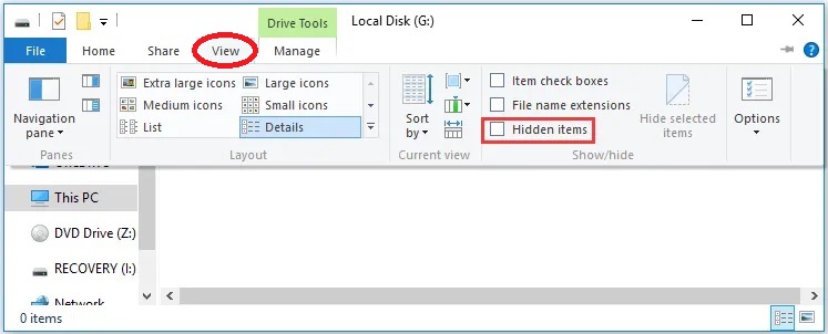 It's easiest to move the images to your device over USB however, but like I said, you won't see the system directory by default as it's hidden. To view hidden items, in Windows File Explorer: