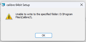 Any reason for that? If the D: drive, or D:\Program Files directory don't exist the installer won't be able to create the Calibre2 subdirectory. BR |