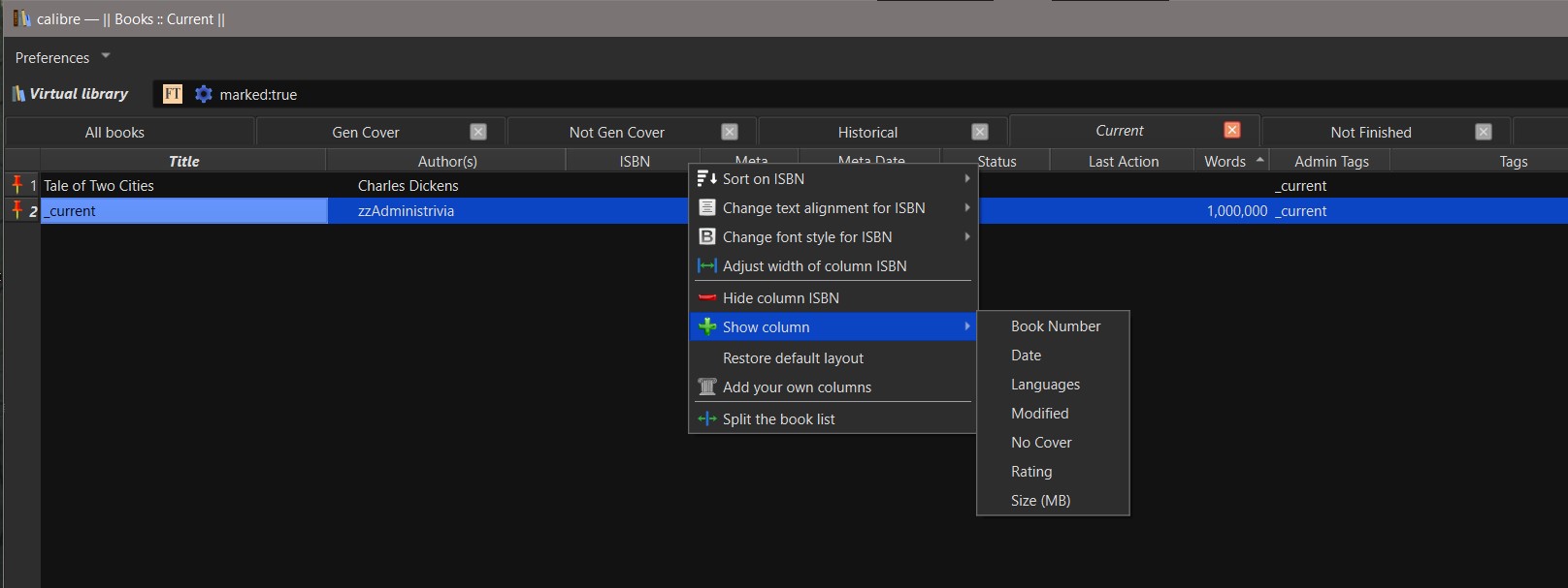 Also, is there a way to deselect all Views and have all columns and every single book in Calibre show? Seems like after installing View Manager and setting up 2 different views, I can only pick between those 2 Views (and see their respective columns) and not have all columns and all books showing.