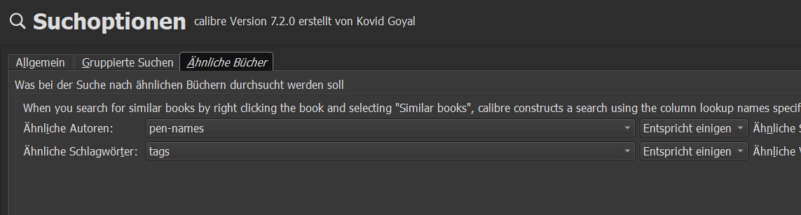 I followed your post https://www.mobileread.com/forums/sh...77#post4333077 and adapted it to my situation. Your column #pen_names is my column #alias. I also had an old group search called pen-names consisting of #authors and #alias and my similar author search is the grouped search pen-names. When I searched for similar authors in the past, every search looked like this one but now a similiar authors search with containing aliases looks like this one I think the confusion comes from my renaming - my grouped search pen-names != your column #pen_names. I hope I was able to bring some clarity to the issue. Edit: The same for my Calibre Portable 7.1 not good news for my attention/memory