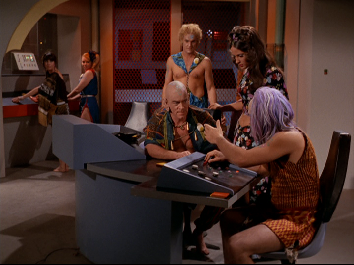 For an episode that reminds you that the original Star Trek started and ended in the 1960s: S3E20: The Way to Eden The one where space hippies hijack the Enterprise. Apparently one of them used to be acquainted with Mr. Chekov (who's gone weirdly out-of-character and is now rigidly pro-establishment). Very well-acquainted: Hilariously, it's Spock who gets along best with the hippies: Captain Kirk just seems exasperated with the whole thing: The hippies don't think much of the "great white captain upstairs" either. He's a 'herbert.' Apparently Herbert was a "minor official notorious for his rigid and limited patterns of thought." Where have I seen that name before? The space hippies also have a tendency to burst into song at the slightest provocation. (Shame that Uhura is missing in this episode.) One of them plays an instrument that looks suspiciously like a wagon wheel prop: So anyways, toward the end, the hippies hijack the Enterprise (that's definitely...a sentence) and steer the ship into Romulan space looking for the mythical paradise planet called Eden. And... they find it! Except whoops, all the plant life is filled with acid. We get some nice shots of the hippies' bare feet blistered by the acidic grass. I won't post a screencap. Also one of them dies by eating a poisonous fruit. (I guess he didn't hear the others screaming as their feet got burned.) His name was Adam. Not exactly subtle on the metaphors there. (Hilariously, the Romulans don't even notice - despite other episodes having them show up and surround the Enterprise the exact moment they stray into their territory. I guess someone at the border monitoring station fell asleep that day.) |