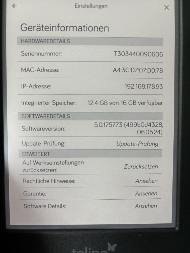 In Case you're wondering which version the Tolino Shine Color (Clara Color) variant is using, it's 5.0.175773. Last edited by rantanplan; 05-19-2024 at 05:23 PM. |