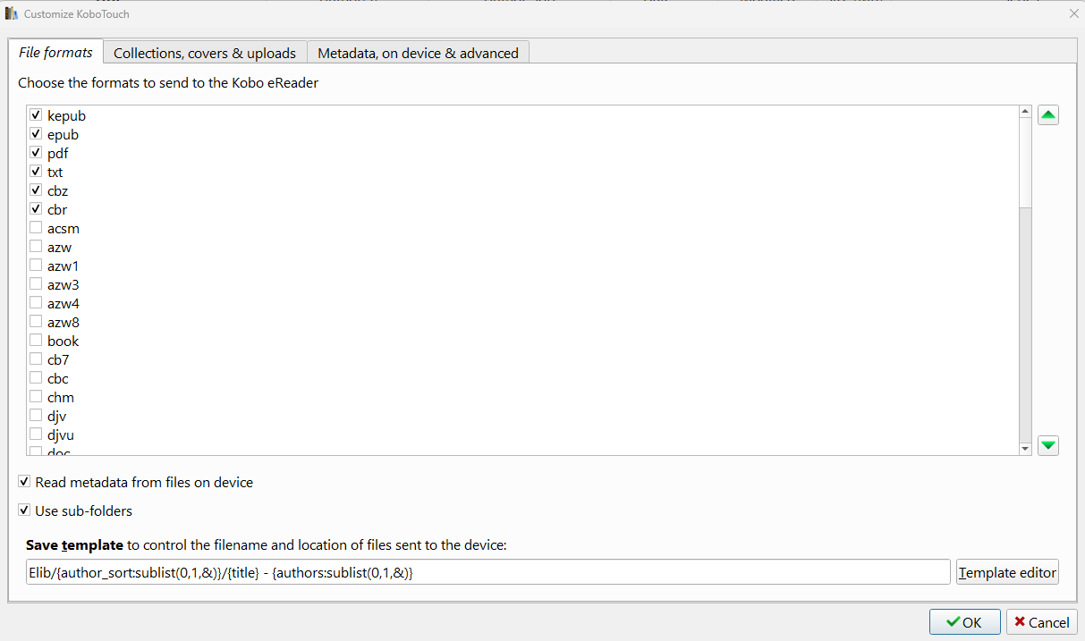 I've attached an image of the save template I use with my Kobo ereaders. Code: