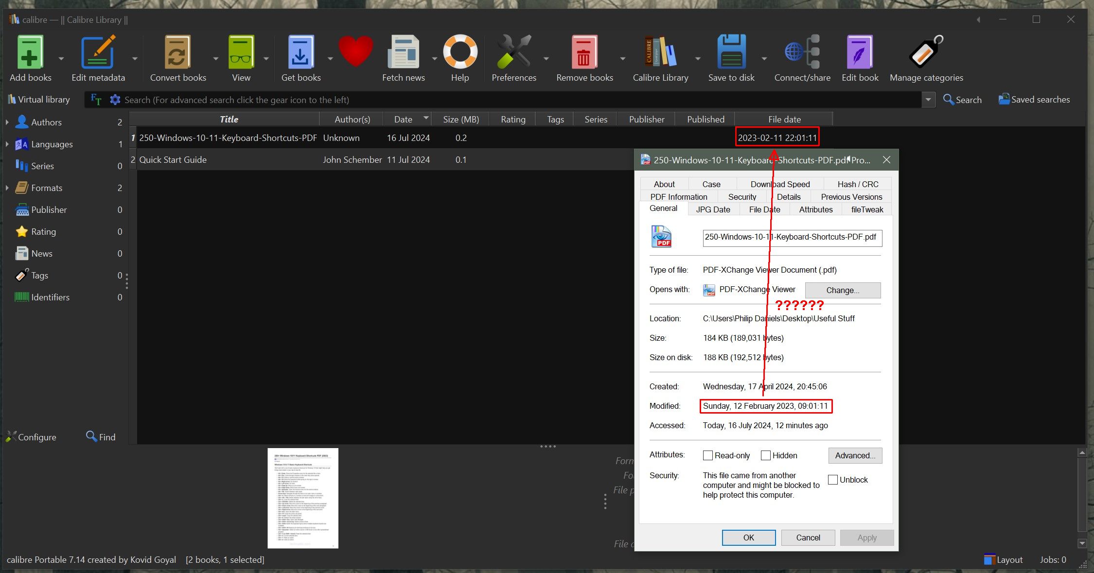 ![]() In any case, filehash likely not so much useful as many things can change it, DeDRM, polishing in metadata/covers, even opening the book in viewer or editor with the default settings. Last edited by ownedbycats; 03-14-2024 at 07:15 PM. |