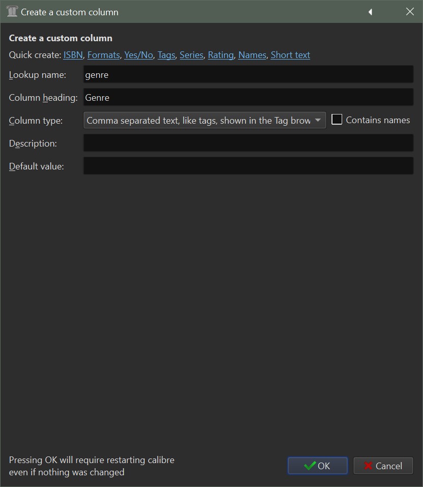 I'm using the latest build (7.15) of Calibre on a Windows 10 laptop. I've set up a hierarchy structure and created a genre called "Cooking". When I try to create a subgroup under "Cooking" called "French", it appears instead as a new genre ("Cooking.French") separate from the genre "Cooking". How do I create a subgroup under a genre? Any help is appreciated! |