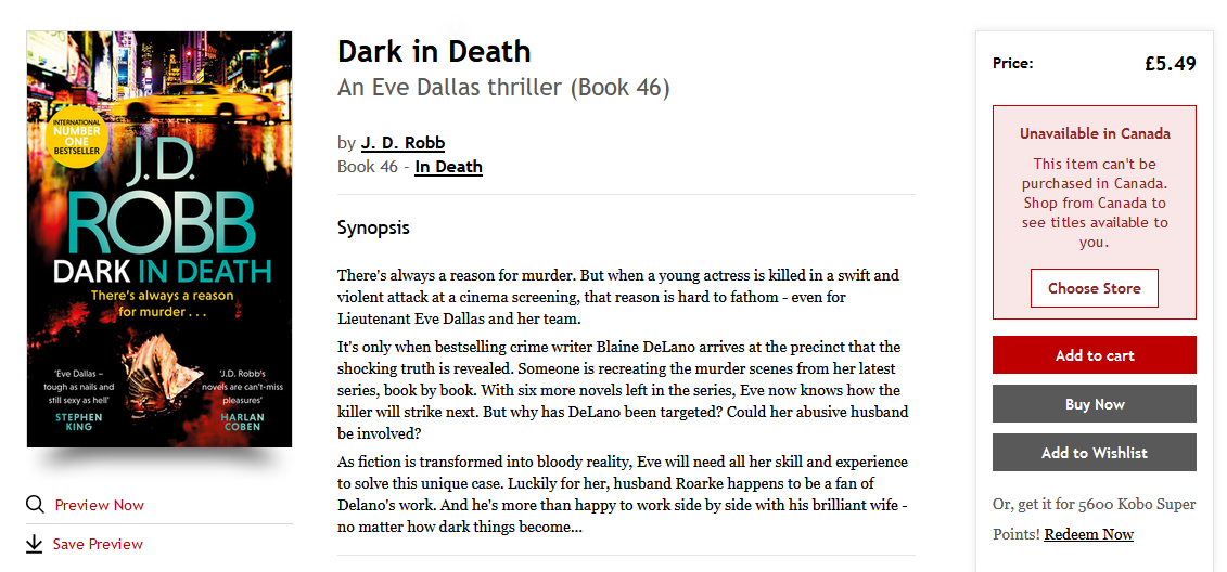I tried setting the first source to Canada and the second source to UK. I've left the number of covers at the default of 5. Downloading the covers from Apple only for J. D. Robb's Dark in Death returned 10 covers. The two covers for Dark in Death were the North American and UK covers. See attached images from Kobo (Amazon, etc. showed the same NA/UK covers).