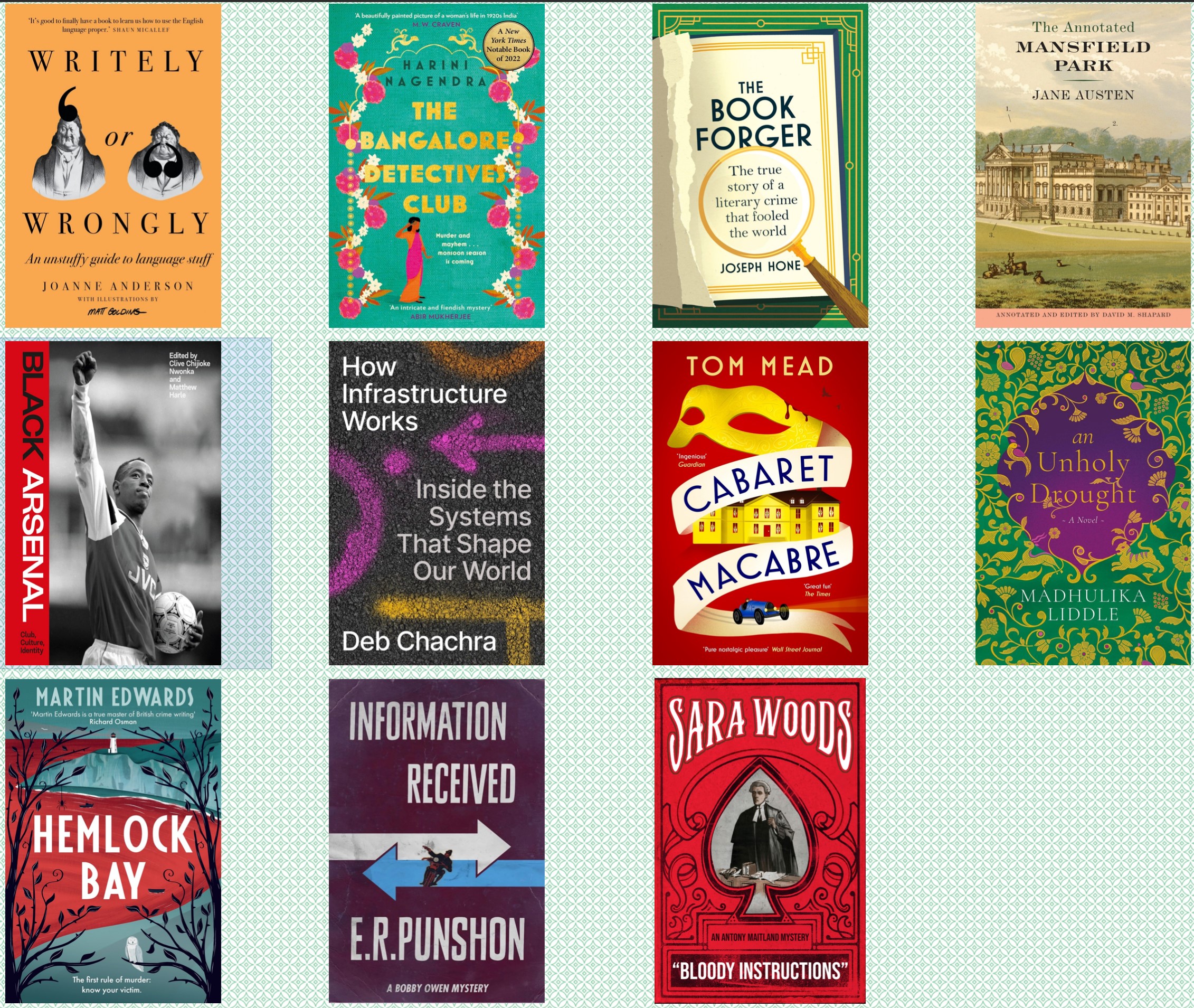 January 26 Writely or Wrongly - Joanne Anderson February 9 The Bangalore Detectives Club - Harini Nagendra March 25 The Book Forger - Joseph Hone August 3 The Annotated Mansfield Park - Jane Austen August 22 Cabaret Macabre - Tom Mead September 6 An Unholy Drought - Madhulika Liddle September 8 Black Arsenal - Clive Chijoke Nwonka, Matthew Harle September 10 How Infrastructure Works: Inside the Systems That Shape Our World - Deb Chachra September 17 Hemlock Bay - Martin Edwards December 9 Information Received - E. R. Punshon December 13 Bloody Instructions - Sara Woods |