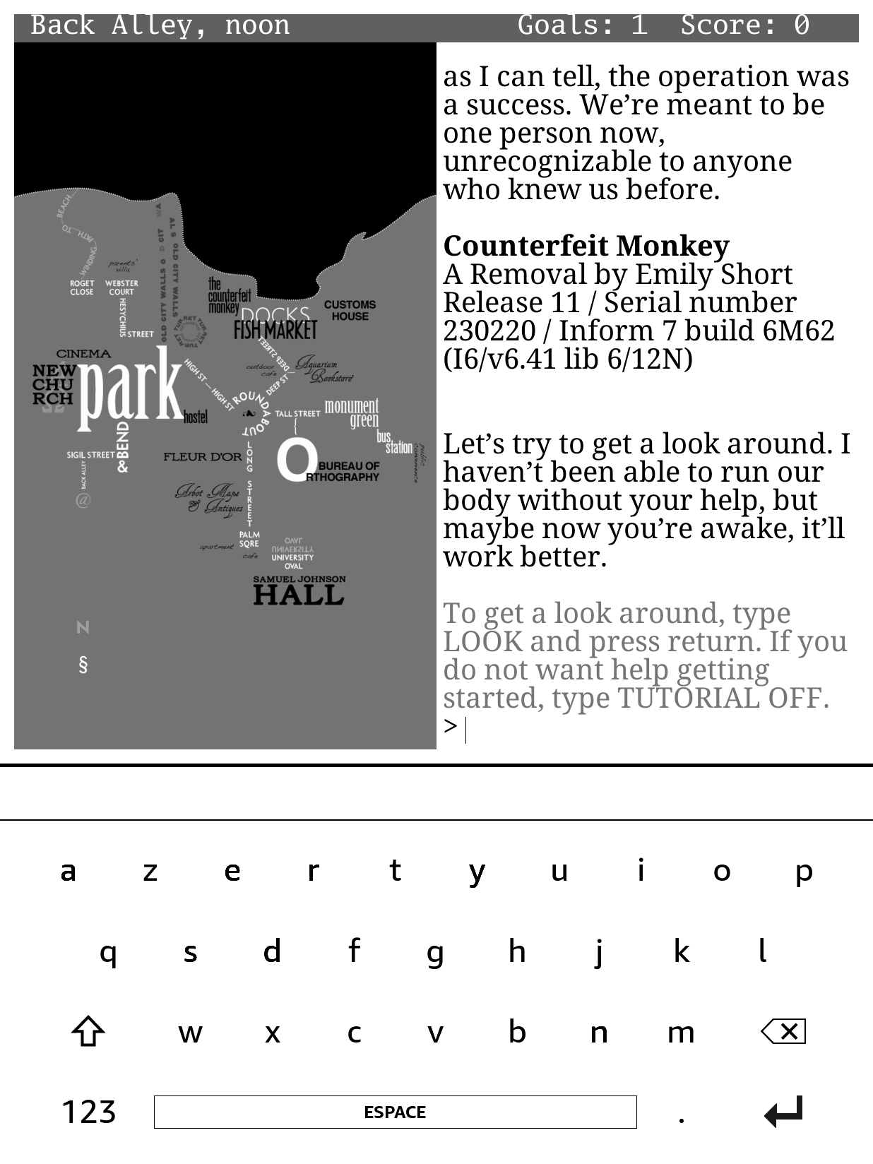 Thanks for building this! I've been interested in IF on my Scribe for a while. I'm on a Scribe 2022 running 5.17.3. I tried some .DAT format files with both your first release and this _2 release and they wouldn't work with either of them. I found an archive with .z5 files, and those do work. However it's hit or miss which one will have the keyboard open once it loads the game. Is there a gesture to show/hide the keyboard and one to quit/close Gargoyle? I've been lucky that the game screen only uses the top 2/3 of the screen, so KUAL is still visible behind it. I happen to have enough extensions in it that the bottom of the Quit button can be tapped when no keyboard is available.