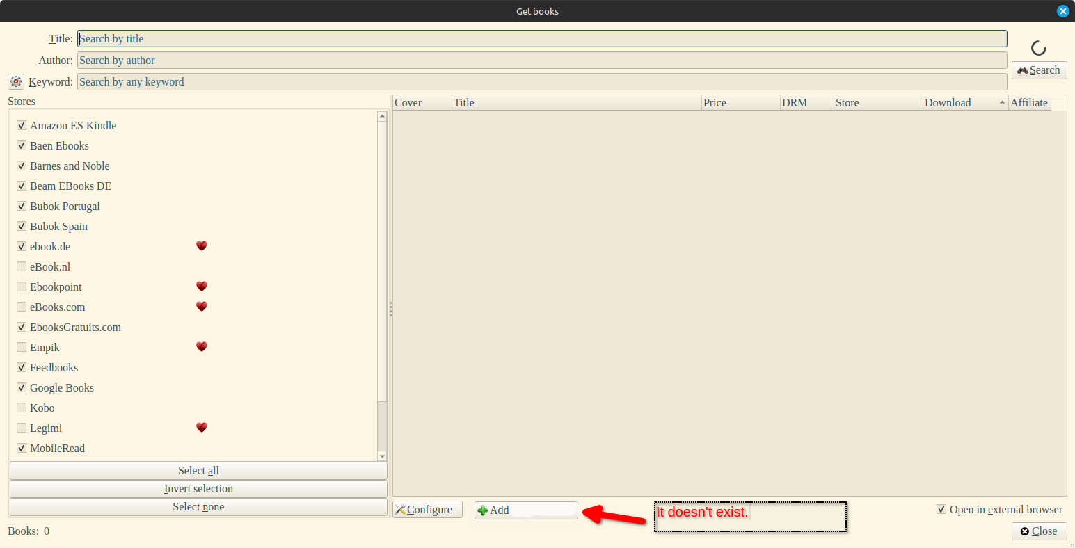 Ive found some historical gems from the Library of Congress Digital Collections (https://www.loc.gov/collections/ - scroll down and choose Digital on the left) and they offer free downloads. How does one make a Store so it gets searched by Calibre when you choose "Get Books"? I dont know how to code but I copy effectively in Notepad and can insert a URL with the best of them. Thank you. |