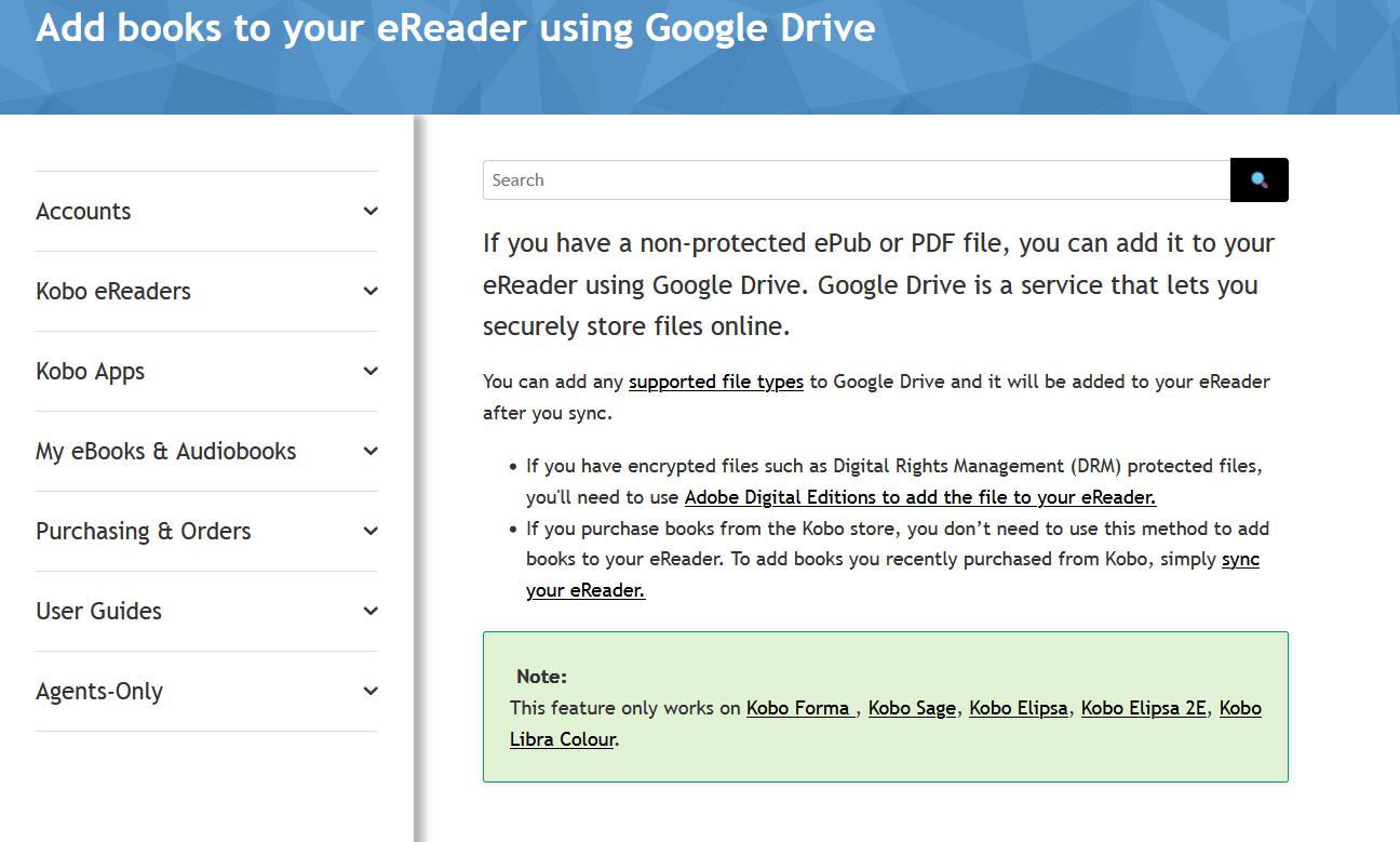 It is interesting that the Kobo help says that if you have v4.37 or higher you can access Google drive. I have v4.38 and don't have the option as stated earlier. This is the Kobo article https://help.kobo.com/hc/en-us/artic...g-Google-Drive its a shame the article doesn't say only available on certain models