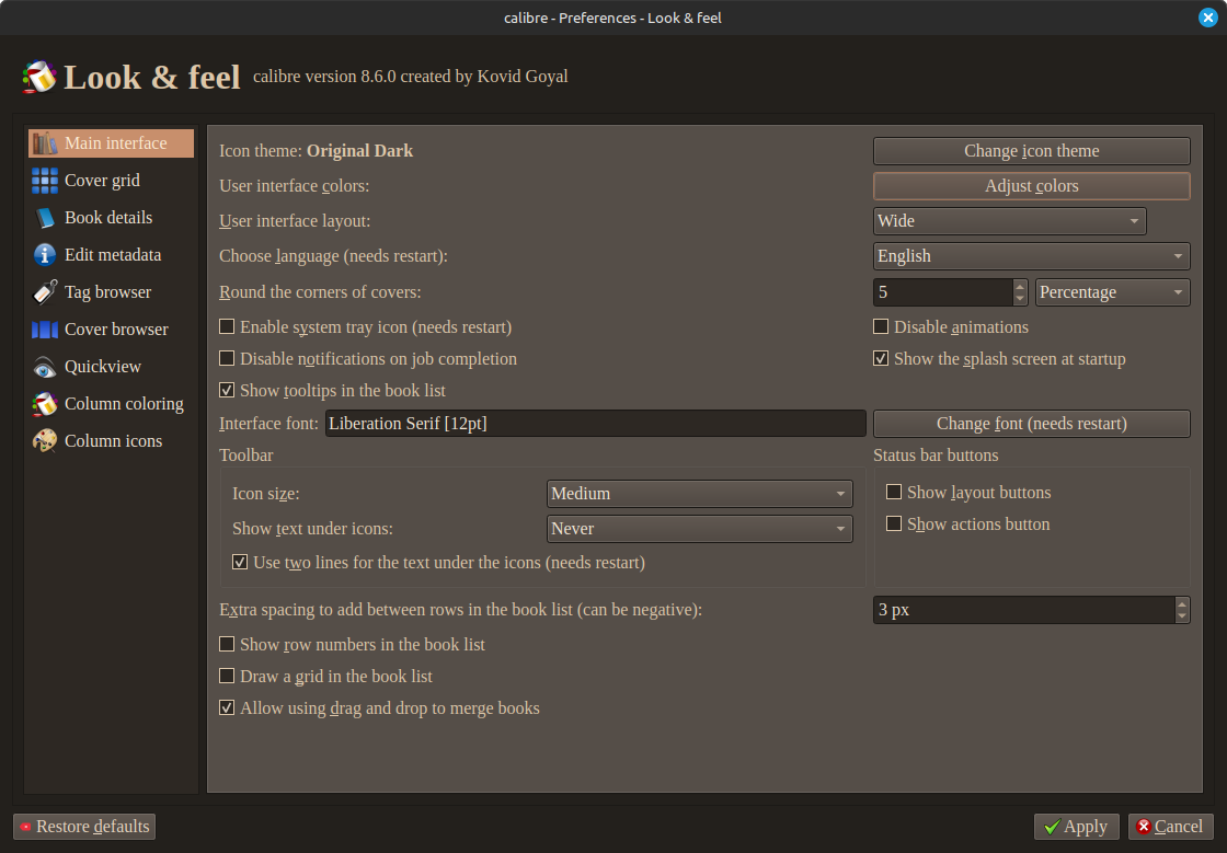 OK, an ask if anyone is up to it. I have been using the Desert Dawn GVim colour scheme for years and years, and it just feels right -- dark but not too dark, and well-defined code element colours. When I switched to using Visual Studio Code for some work, I was happy to find that palette recreated there, and so I use that same basic palette there. This is NOT something I feel up to recreating myself for Calibre, but would love to have. If anyone feels up to recreating it as a Calibre palette, I would be extremely grateful.