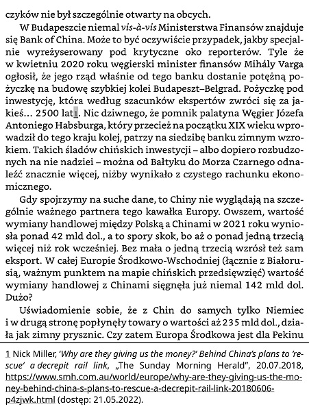 <p class="calibre9"><a id="footnote-226" href="naglowki_001.xhtml#footnote-226-backlink" class="calibre14">1</a> Nick Miller, ‘<i class="calibre15">Why are they giving us the money?’ Behind China’s plans to ‘rescue’ a*decrepit rail link</i>, „The Sunday Morning Herald”, 20.07.2018, <a href="https://www.smh.com.au/world/europe/why-are-they-giving-us-the-money-behind-china-s-plans-to-rescue-a-decrepit-rail-link-20180606-p4zjwk.html" class="calibre14">https://www.smh.com.au/world/europe/why-are-they-giving-us-the-money-behind-china-s-plans-to-rescue-a-decrepit-rail-link-20180606-p4zjwk.html</a> (dostęp: 21.05.2022).</p>