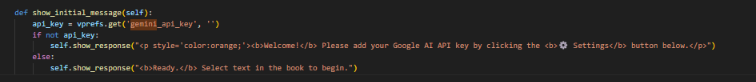 As a long-time user, I admire and appreciate the continuous effort that has made Calibre the indispensable application it is today. My sincere gratitude to all involved. My gratitude aside, now a reflection on the reading experience (that many may be able to attest to). Through countless hours of reading, I've often found myself pausing, grappling with questions a page (or pages) alone cannot answer. Such unanswered questions frequently necessitates reaching for external tools - be it search engines or, increasingly, Large Language Models (LLMs) like ChatGPT - to bring the reader (me) to deeper comprehension. Think extracting the logical structure from an argument in Spinoza's Ethics or identifying experimental findings from a highly technical paper in Science magazine -- sure, one can meticulously re-read, cross-reference, and manually outline these works, to eventually get to the "answers," but an LLM offers that which traditional tools cannot provide: an immediate, context-aware synthesis, one that drastically reduces the cognitive overhead and time spent in the pursuit of genuine understanding; after all, effort saved is focus gained. To expand briefly on the point: unlike static resources that provide isolated facts or definitions (e.g., search engines or dictionaries), LLMs can take a paragraph or passage as complex as Kant's Critique of Pure Reason or as dense as a molecular biology research paper from Nature and instead synthesize its core ideas, explain complex relationships, or rephrase it into simpler term -- and all while retaining important context. It has led me to a realization that I have finally decided to act upon: while having a separate LLM window (ChatGPT, Claude, Grok, Gemini, etc.,) works, imagine the metamorphic potential if this capability were integrated directly into the Calibre application itself. With that vision, I have developed and tested a new feature that integrates Google's Gemini API (which can be abstracted to any compatible LLM) directly into the Calibre E-book Viewer. My aim is to empower users with in-context AI tools, removing the need to leave the reading environment. The results: capability of instant text summarization, clarification of complex topics, grammar correction, translation, and more, enhancing the reading and research experience. Key Features Implemented: