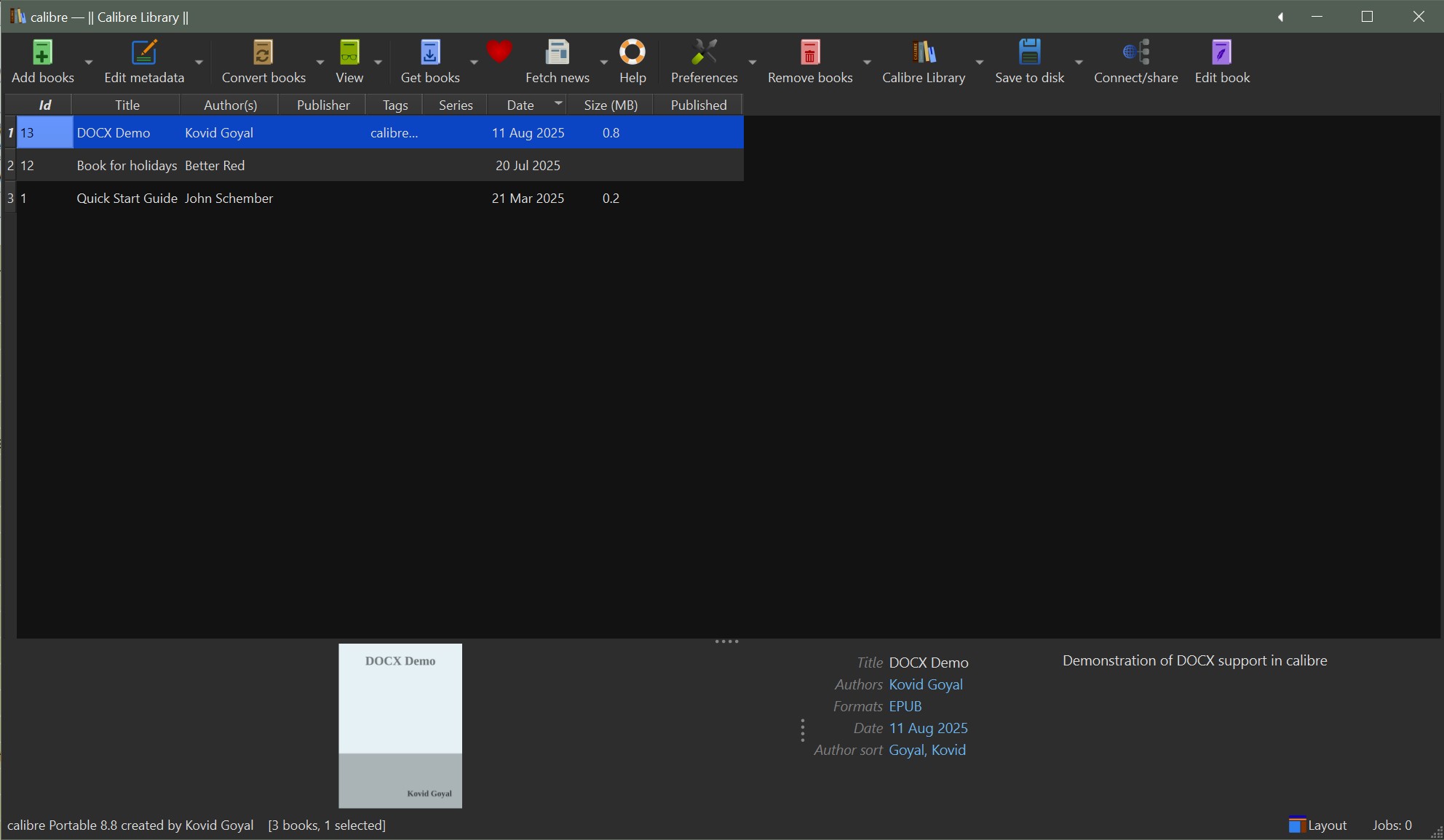 calibre, version 8.8.0 AVERTISSEMENT : Pas de format adapté: Impossible d’envoyer les livres suivants vers le périphérique, car aucun format approprié n’a été trouvé. Convertissez d'abord le(s) livre(s) vers un format pris en charge par votre périphérique. Des vents contraires Les Lisières and many other books not transferred WARNING: No suitable format: The following books could not be sent to the device because no suitable format was found. First, convert the book(s) to a format supported by your device. And another pop up : Code: