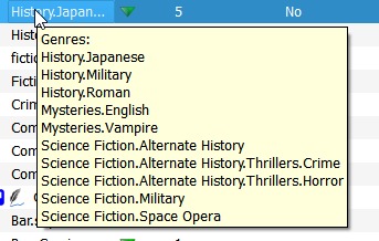 Here is a basic example of using a custom tooltip: presenting a list of genres in a more readable fashion. The standard tooltip looks like this. There are multiple genres per line with some of them broken across lines. If I use this template to generate the tooltip Code: