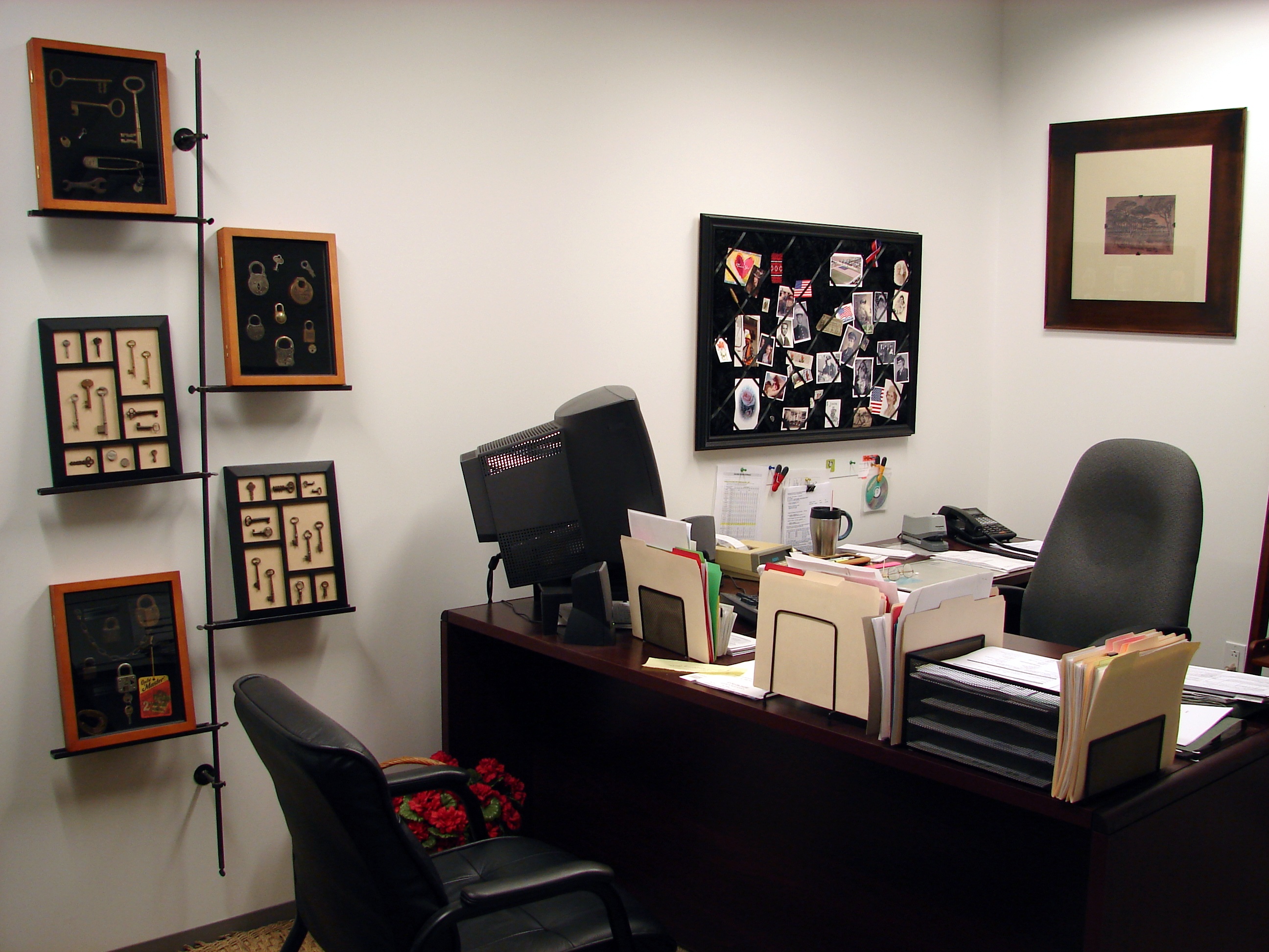 This was my last office. My company moved awhile back and now I have a (sort of) corner office with windows but it's a little smaller. Haven't gotten around to taking any pictures of the newer place yet.
