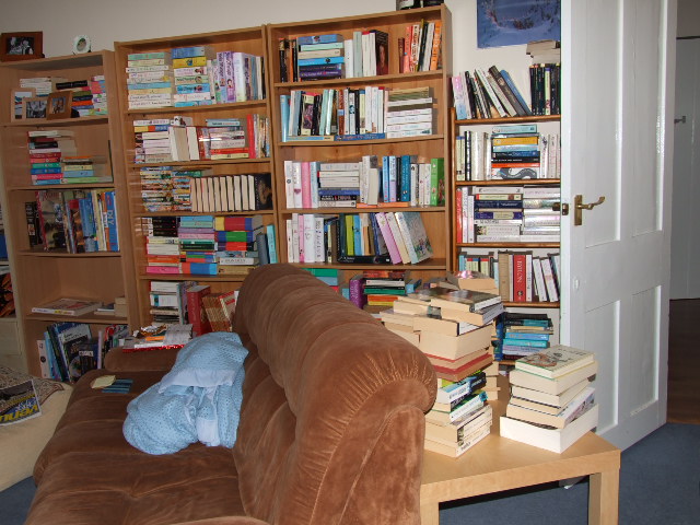 This is my space - the "desk corner" of our living room, which I share with the laundry. But I have fitted in some of my books!
