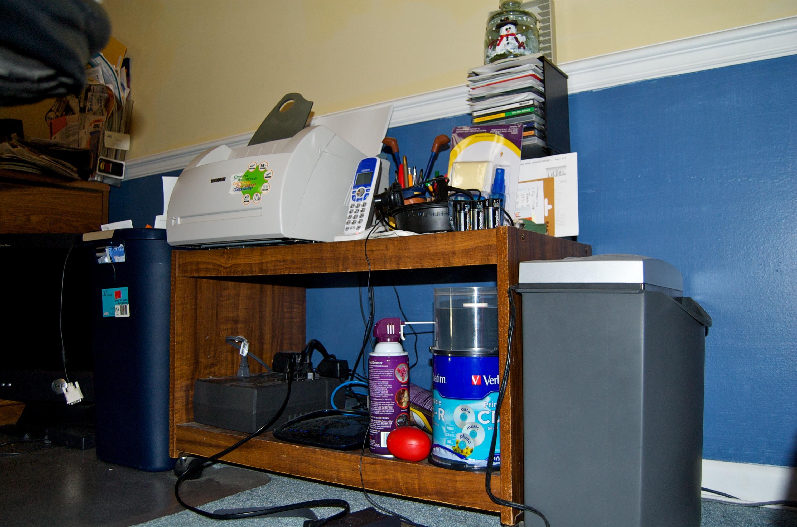 Show us your digs. This is a spin off of another thread where we say some pics of peoples work stations. So, show of how messy or neat your work space is. Here's some pics of my desk and to the left of my desk were my printer and stuff is.