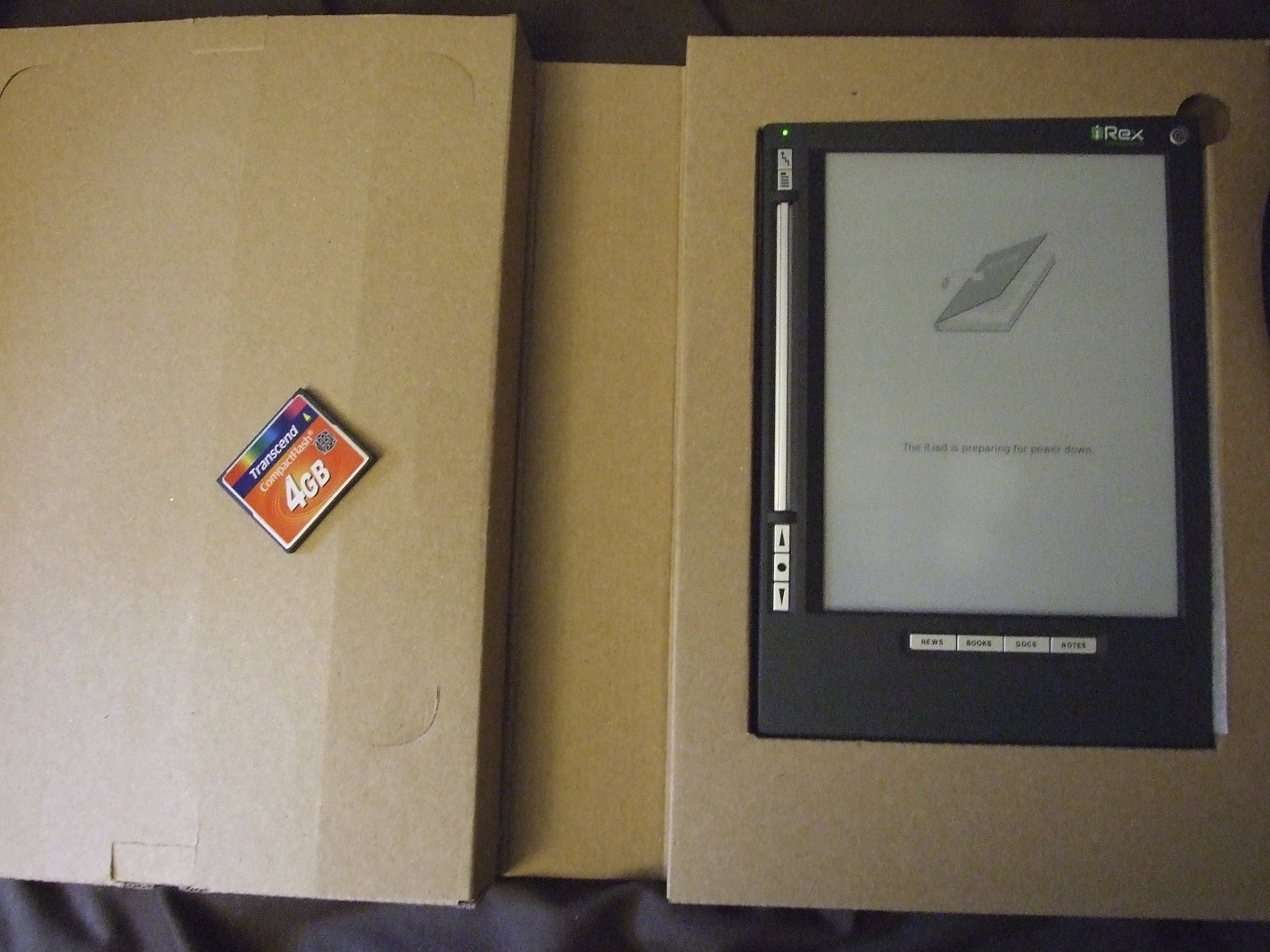 Anyway I used it for a whole semester at school and I've found that its not exactly the greatest device for text book usage. On top of having to convert everything, the screen really needs to be bigger for comfortable reading. Because of all this I hope to pass the irex forward to someone else who would be able to give it a better home. I'm asking for 400+shipping (sorry paypal only!) The irex iliad v2, a leather case, and an additional 4gb compact flash card will be thrown in. I also have the original packaging, and all included accessories. I will be posting pictures of everything tonight. |